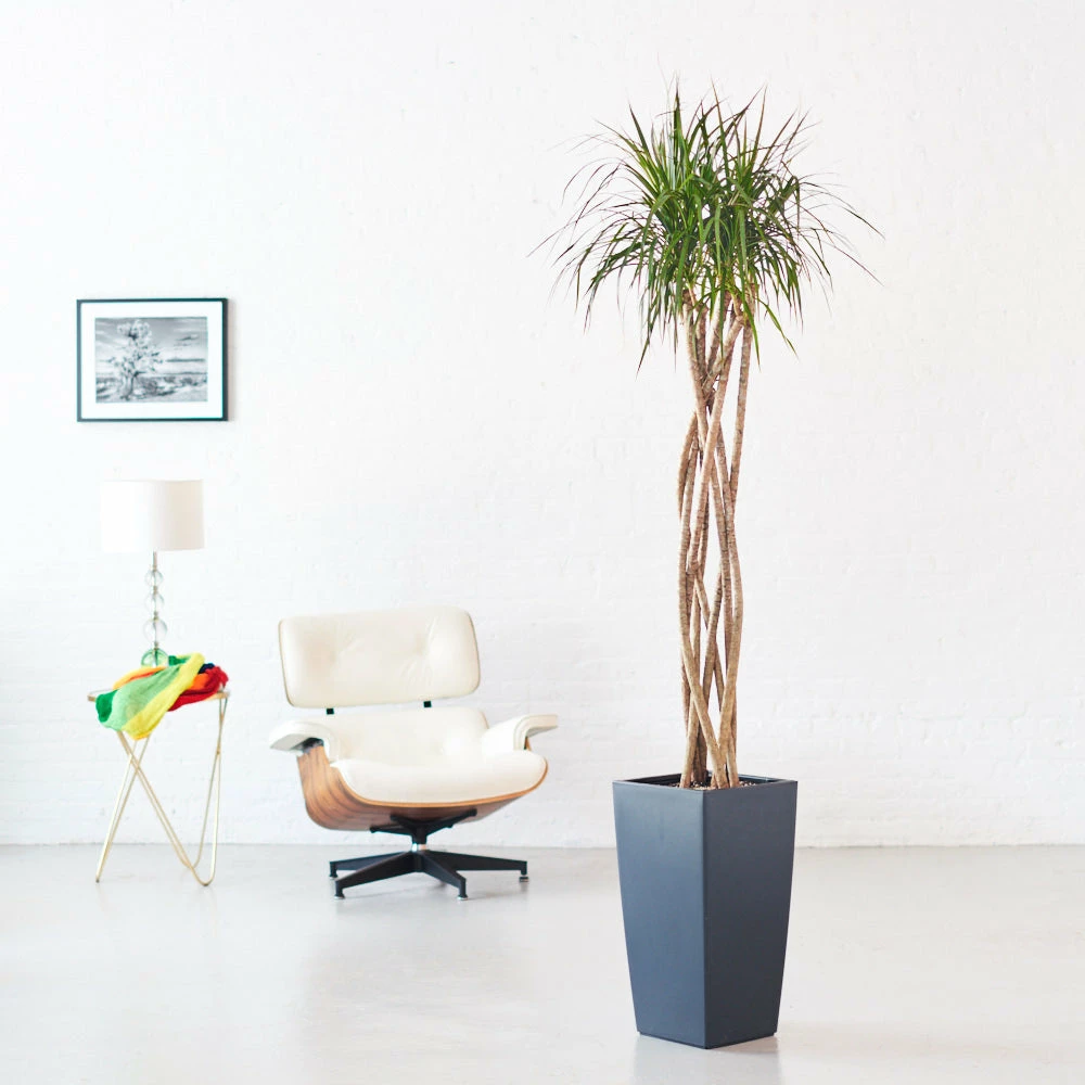 Dracaena “Marginata” aka Dragon Tree plant is potted in the simple modern planter. NASA recommends Dracaena “Marginata” plant as the excellent plants for removing harmful chemicals from the air. Keep the air clean while adding a unique looking, living element to your space.